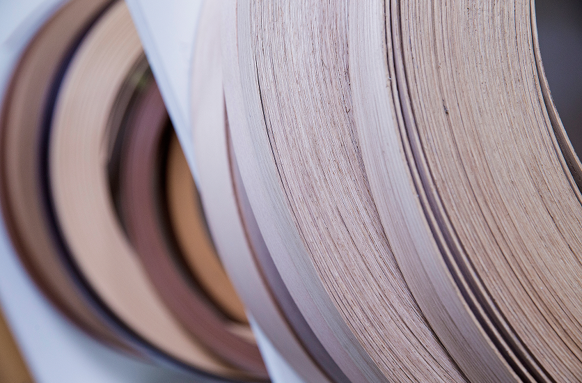 레이저 / 핫에어 엣지는 글루라인이 보이지 않는 제로조인트(Seamless) 마감이 특징인 차세대 엣지밴드입니다. 기존 PUR 및 EVA 접착 공정과 달리, 엣지 하부에 미리 도포된 우레탄계열 핫멜트를 레이저 열원이나 핫에어 유닛으로 녹여 접착하기 때문에 고급스러운 외관과 더불어 깔끔한 작업 환경까지 구현할 수 있습니다. 특히 내수성, 내열성, 접착 강도 등에서 뛰어난 성능을 발휘하며, 고속 자동화와 생산 안정성 측면에서도 우수한 솔루션입니다.